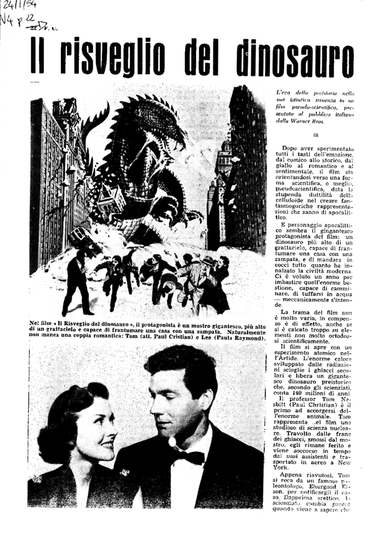 | Film (keywords PRIN 2012) | The Beast from 20,000 Fathoms (Il risveglio del dinosauro, Ray Bradbury) |