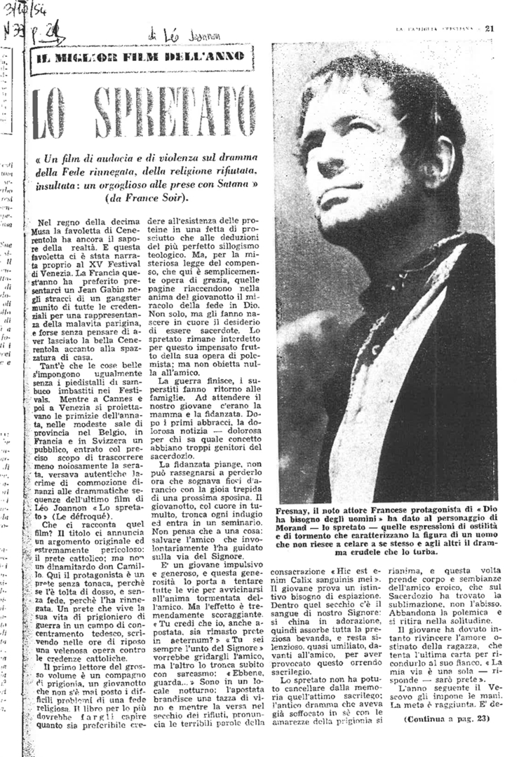 | Film (keywords PRIN 2012) | Le défroqué (Lo spretato, Léo Joannon) |