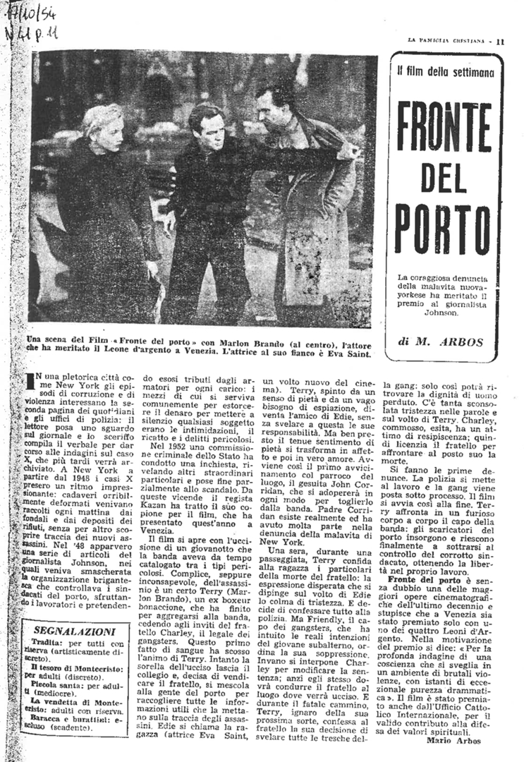 | Film (keywords PRIN 2012) | On the Waterfront (Fronte del porto, Elia Kazan) |