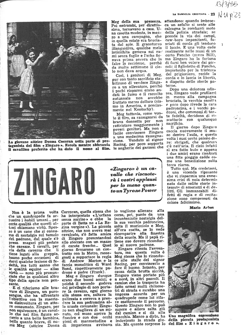"Zingaro è un cavallo che riscuoterà i vostri applausi per lo meno quanto un Tyrone Power"