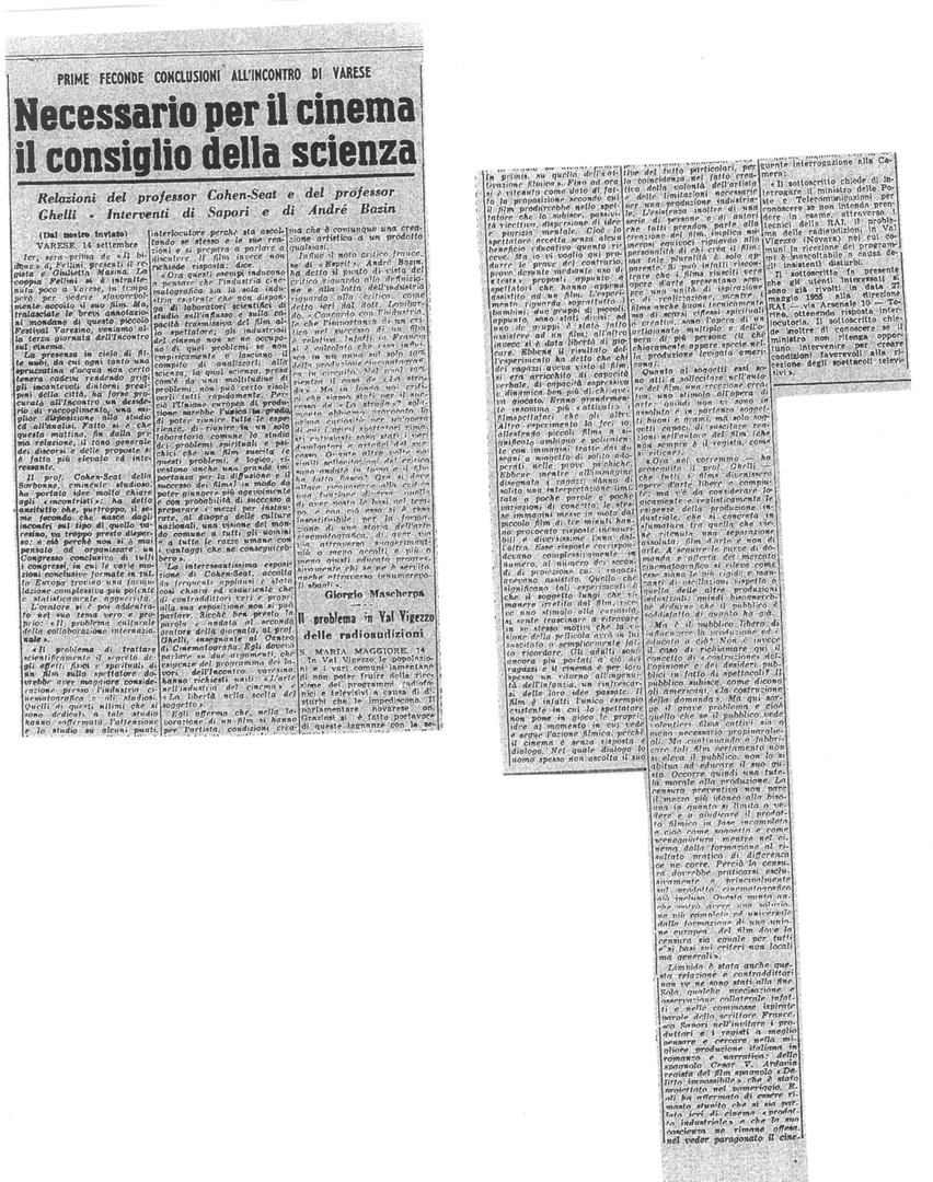 "Relazioni del professor Cohen-Seat e del professor Ghelli - Interventi di Sapori e di André Bazin"