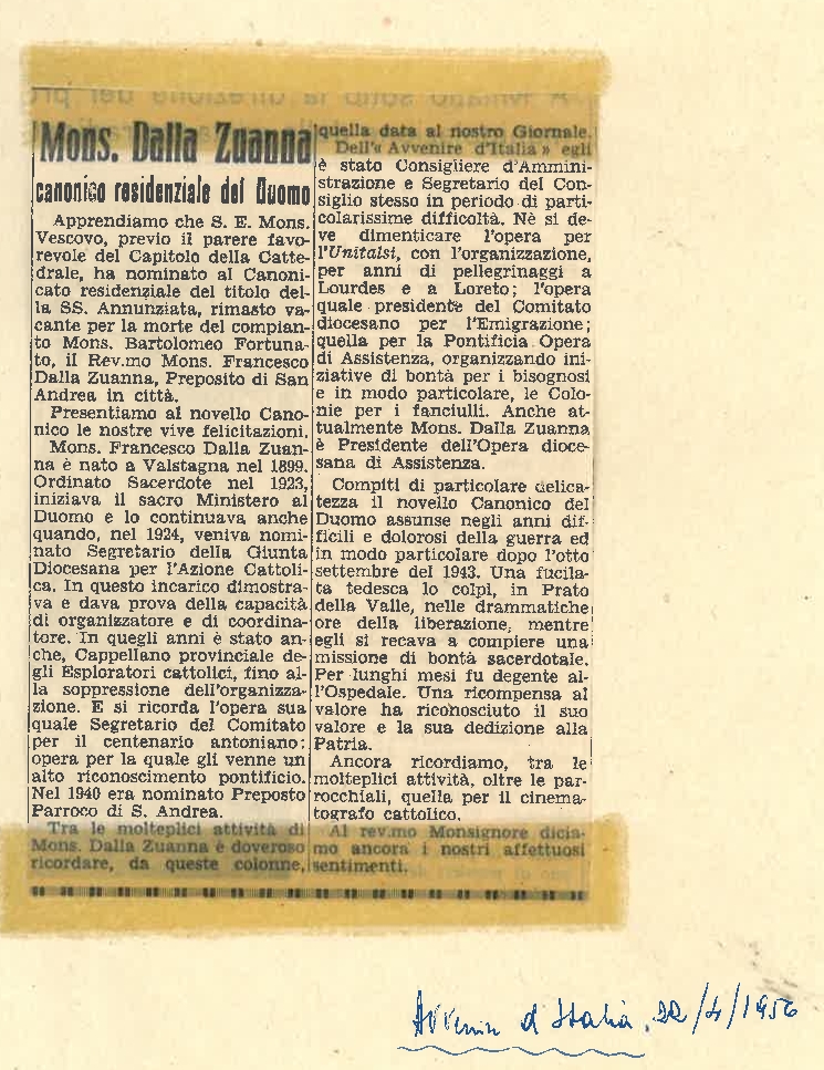 "Mons. Dalla Zuanna canonico residenziale del Duomo"