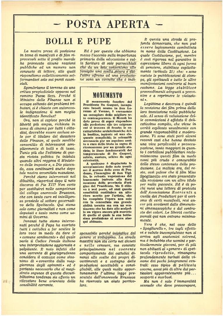 | Note | Rubrica Posta Aperta pagine senza numerazione L'autore si firma G.A. |