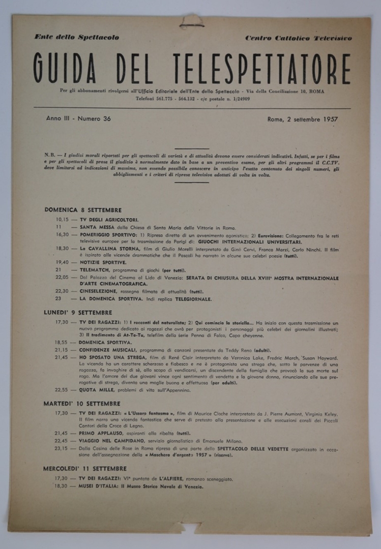 | Temi (keywords PRIN 2012) | CCT (Centro Cattolico Televisivo) Ente dello Spettacolo televisione valutazione morale dei programmi radiofonici e televisivi |