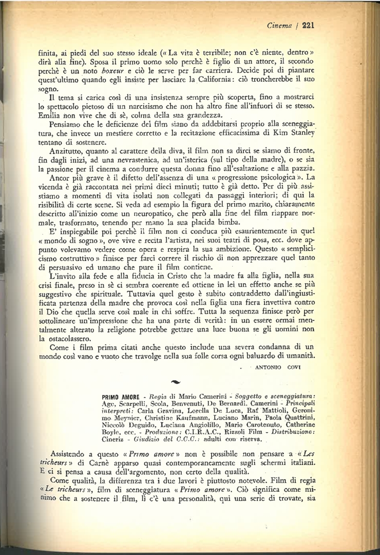 | Note | "Primo amore" è il titolo di un fil di Mario Camerini. |