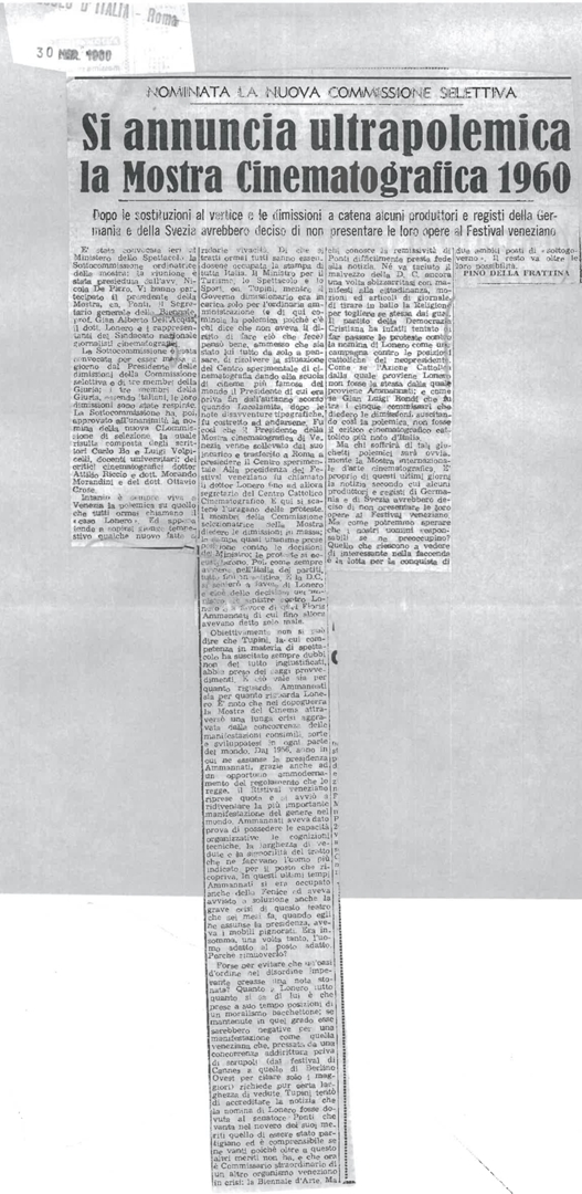 "Si annuncia ultrapolemica la mostra cinematografica 1960"