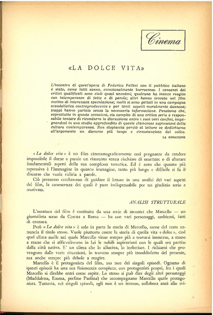 | Film (keywords PRIN 2012) | La dolce vita (Federico Fellini) |