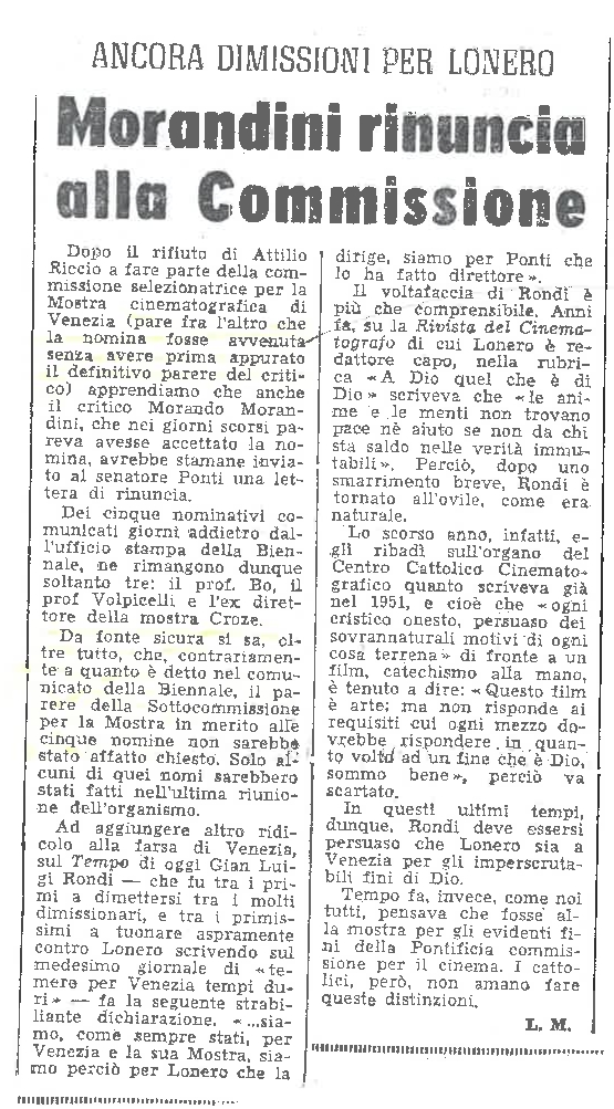 | Temi (keywords PRIN 2012) | Emilio Lonero Gian Luigi Rondi Morando Morandini Mostra Internazionale del Cinema di Venezia XXI Mostra Internazionale del Cinema di Venezia |