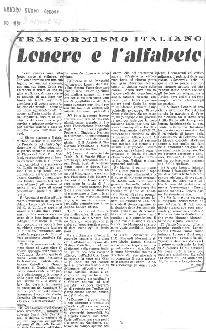 | Temi (keywords PRIN 2012) | Emilio Lonero Floris Ammannati Mostra Internazionale del Cinema di Venezia Rivista del Cinematografo XXI Mostra Internazionale del Cinema di Venezia editoria e stampa cattolica |