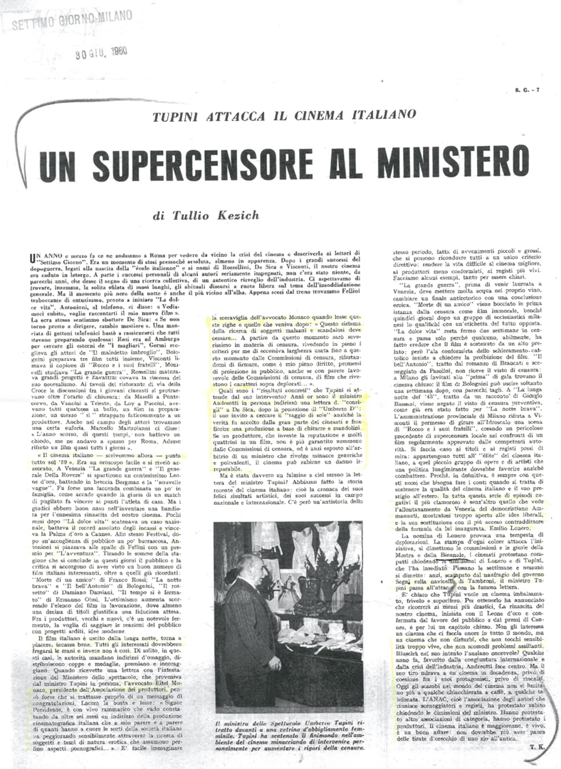 "Tupini attacca il cinema italiano"