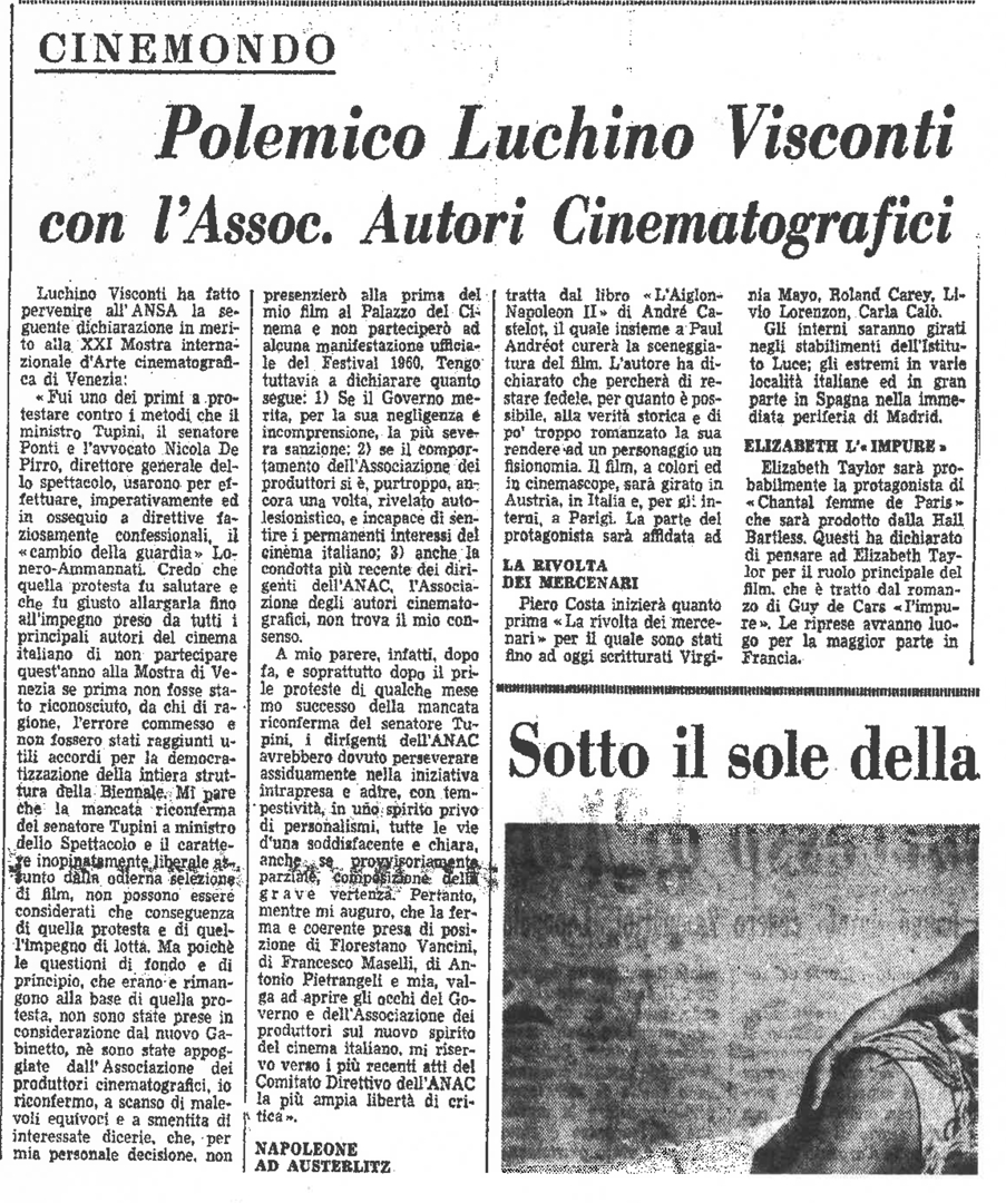"Polemico Luchino Visconti con l'Assoc. Autori Cinematografici"