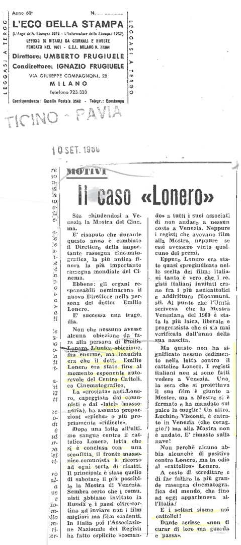 | Temi (keywords PRIN 2012) | Emilio Lonero Mostra Internazionale del Cinema di Venezia XXI Mostra Internazionale del Cinema di Venezia anticomunismo |