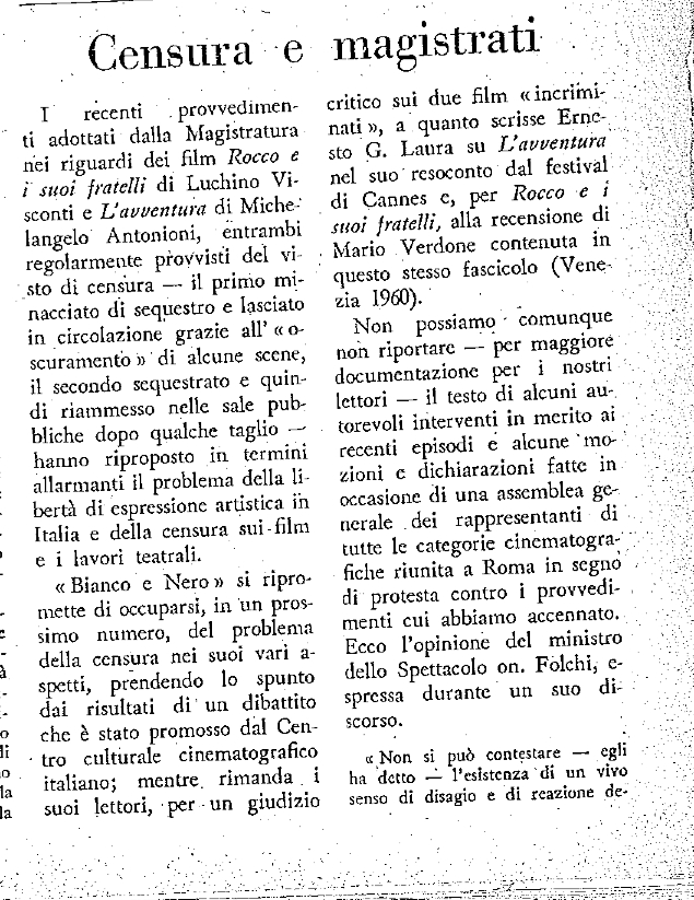 | Film (keywords PRIN 2012) | L'avventura (Michelangelo Antonioni) Rocco e i suoi fratelli (Luchino Visconti) |