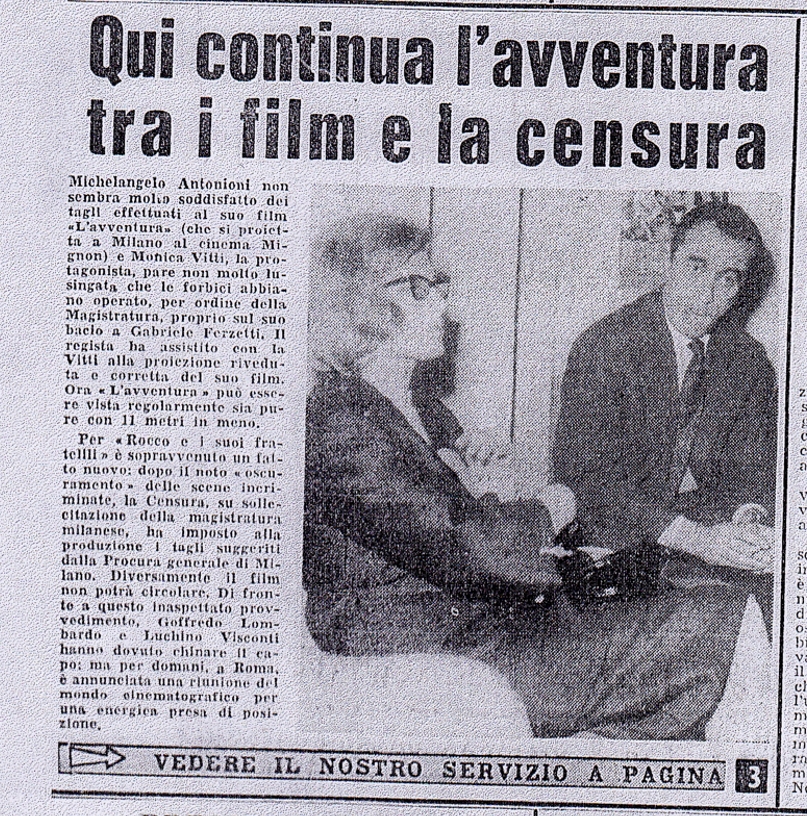 "L'avventura di Antonioni accorciata di undici metri"