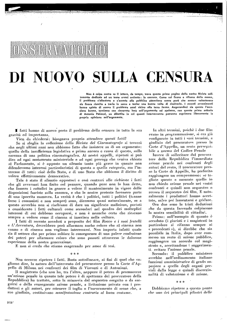 | Film (keywords PRIN 2012) | L'avventura (Michelangelo Antonioni) Rocco e i suoi fratelli (Luchino Visconti) |