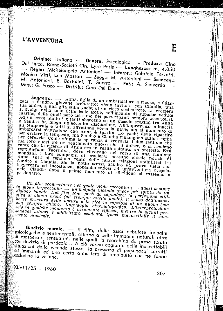 | Film (keywords PRIN 2012) | L'avventura (Michelangelo Antonioni) |