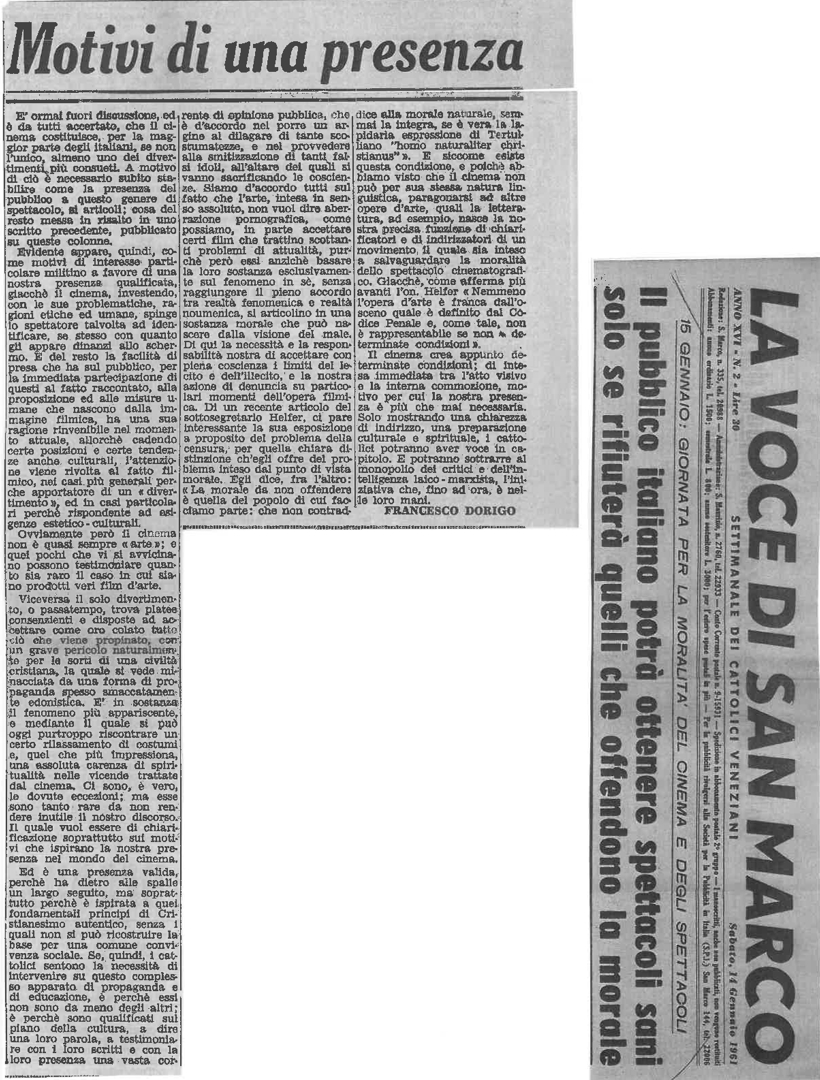 | Temi (keywords PRIN 2012) | Giornata per la moralità dello spettacolo e del cinema (15 gennaio 1961) Sottosegretariato allo Spettacolo censura amministrativa osceno |