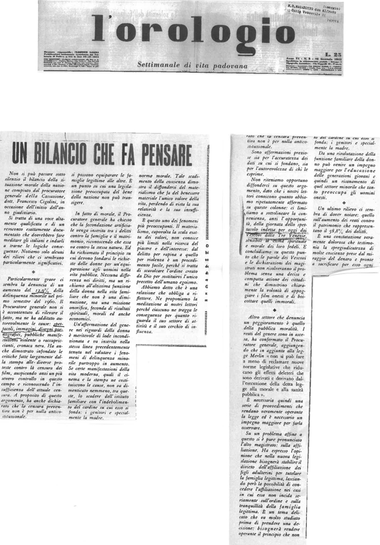 | Temi (keywords PRIN 2012) | Giornata per la moralità dello spettacolo e del cinema (15 gennaio 1961) Legge Merlin cinema immorale matrimonio e divorzio osceno |