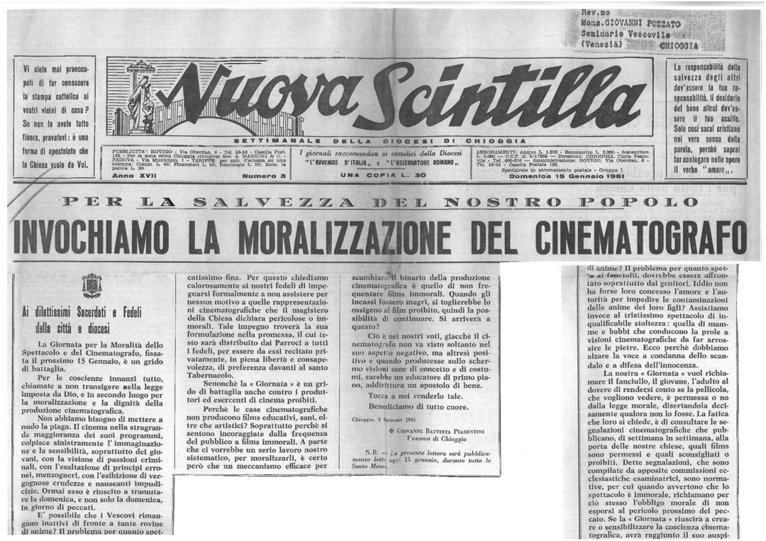 | Temi (keywords PRIN 2012) | Giornata per la moralità dello spettacolo e del cinema (15 gennaio 1961) cinema immorale revisione cinematografica |