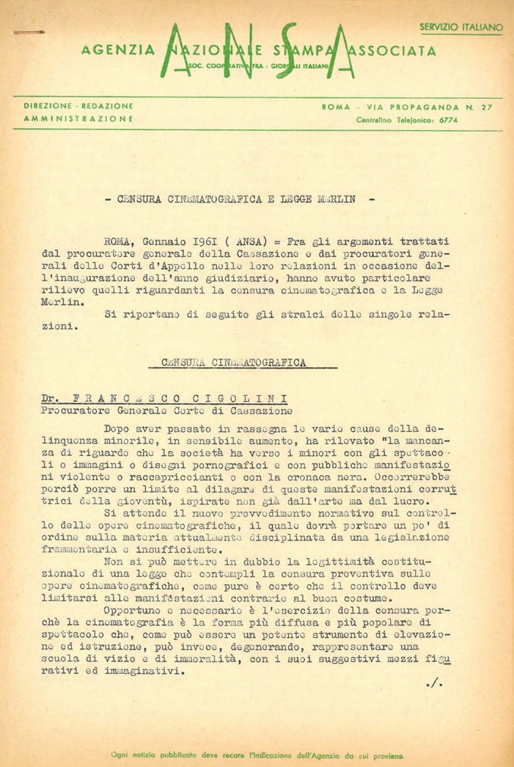 ANSA - Agenzia Nazionale Stampa Associata, gennaio 1961