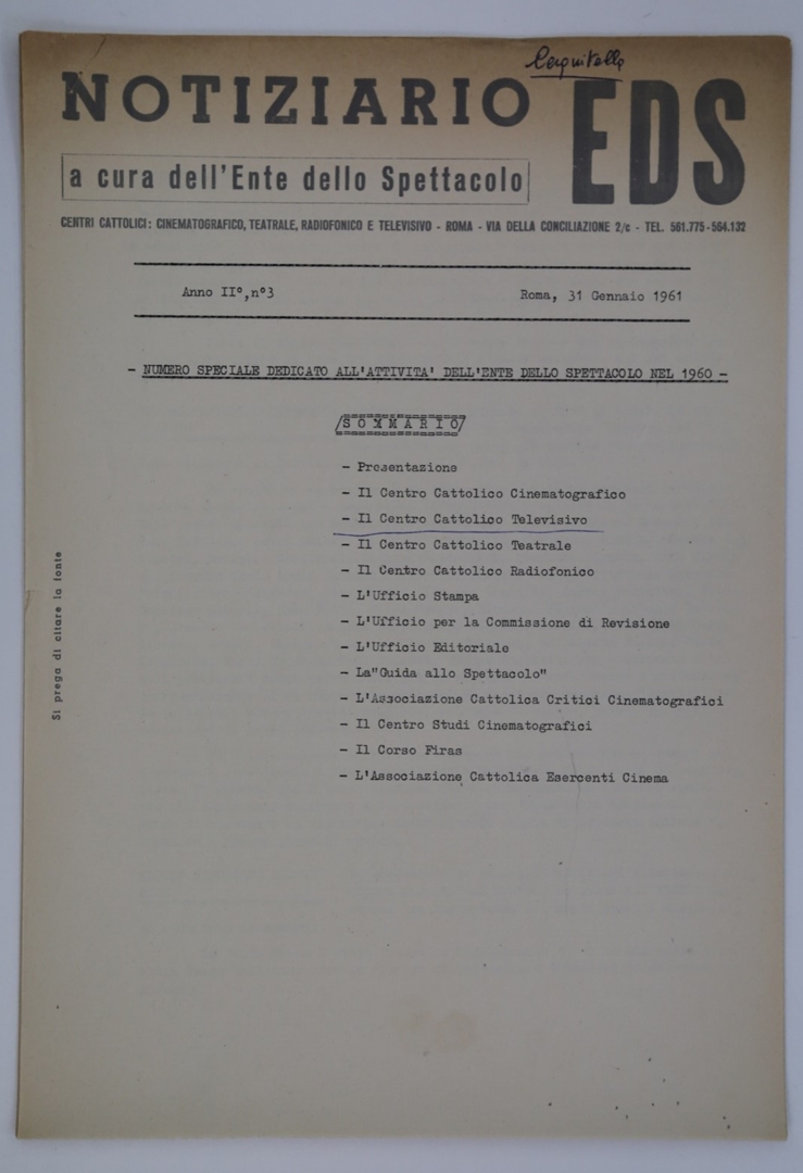 Notiziario EDS Ente dello Spettacolo, Anno II, n. 3