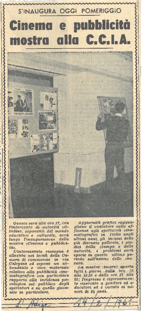 "Cinema e pubblicità mostra alla C.C.I.A."