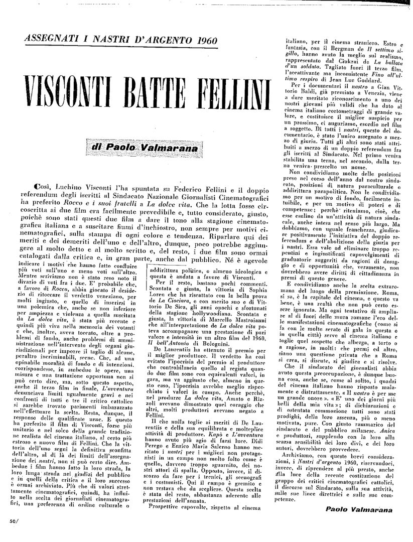 | Film (keywords PRIN 2012) | Ballada o soldate (La ballata di un soldato, Grigorij Cuchraj) Det sjunde inseglet (Il settimo sigillo, Ingmar Bergman) Il bell'Antonio (Mauro Bolognini) Kapò (Gillo Pontecorvo) L'avventura (Michelangelo Antonioni) La ciociara (Vittorio De Sica) La dolce vita (Federico Fellini) Rocco e i suoi fratelli (Luchino Visconti) À bout de souffle (Fino all'ultimo respiro, Jean-Luc Godard) |