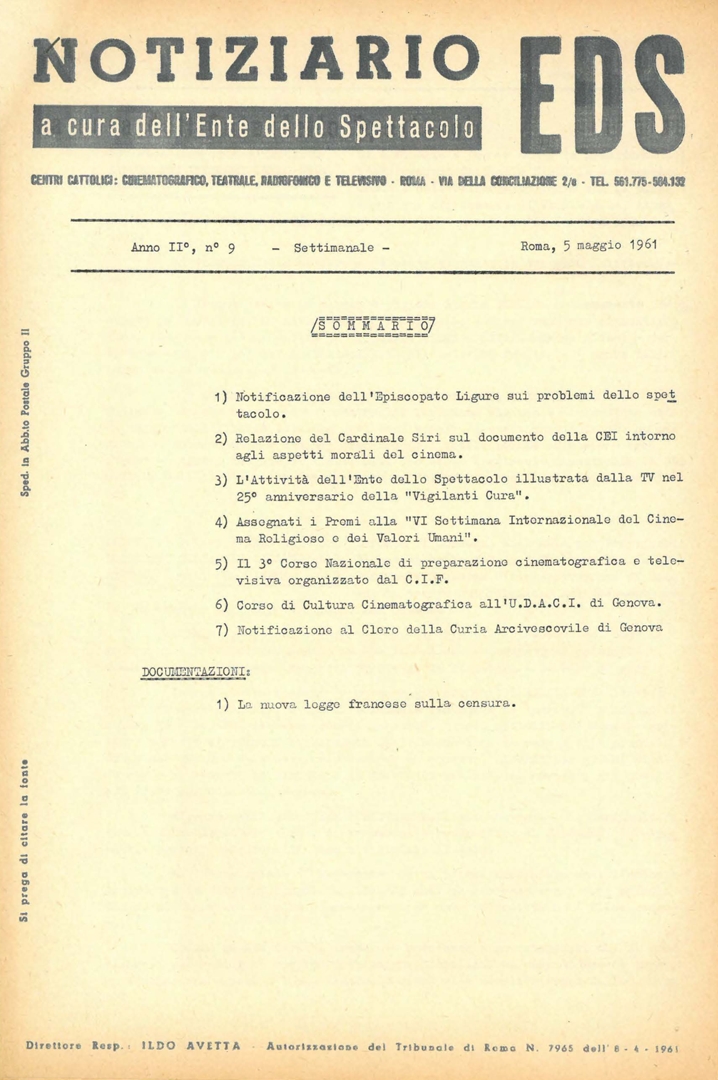 Notiziario EDS Ente dello Spettacolo, Anno II, N. 9