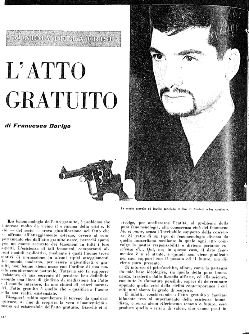 | Film (keywords PRIN 2012) | I dolci inganni (Alberto Lattuada) L'avventura (Michelangelo Antonioni) La giornata balorda (Mauro Bolognini) La notte (Michelangelo Antonioni) La notte brava (Mauro Bolognini) Les quatre cents coups (I quattrocento colpi, François Truffaut) À double tour (A doppia mandata, Claude Chabrol) |