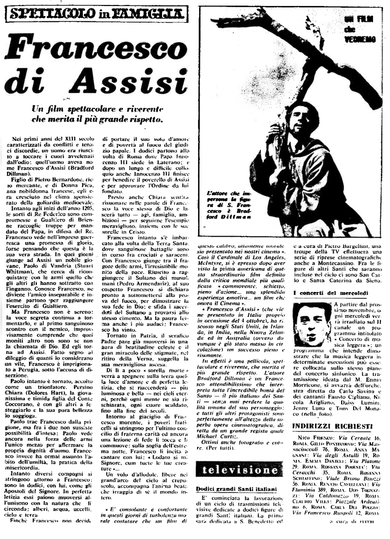 Film (keywords PRIN 2012) | Francis of Assisi (Francesco d'Assisi, Michael Curtiz) |