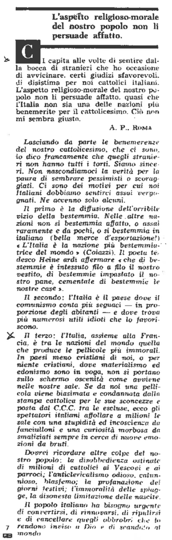 "L'aspetto religioso-morale del nostro popolo non li persuade affatto"