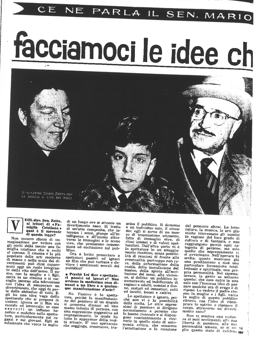"Ce ne parla il sen. Mario Zotta relatore della legge"