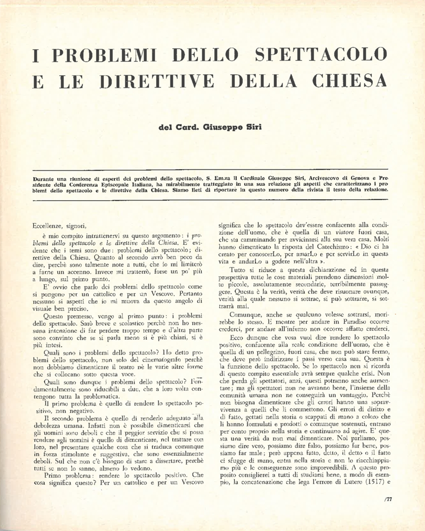 | Temi (keywords PRIN 2012) | cinema immorale documenti del magistero e disposizioni dell'autorità ecclesiastica revisione cinematografica |