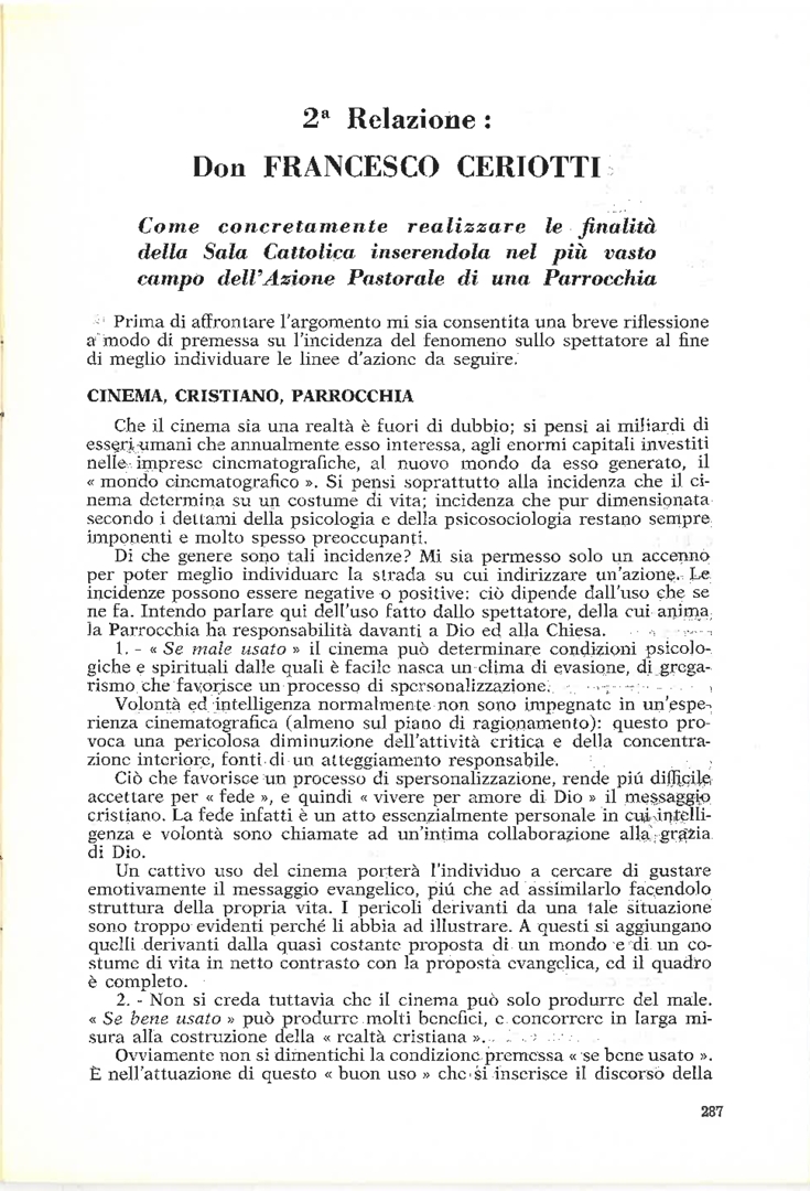 "Come concretamente realizzare le finalità della sala cattolica inserendola nel più vasto campo dell'azione pastorale di una parrocchia"