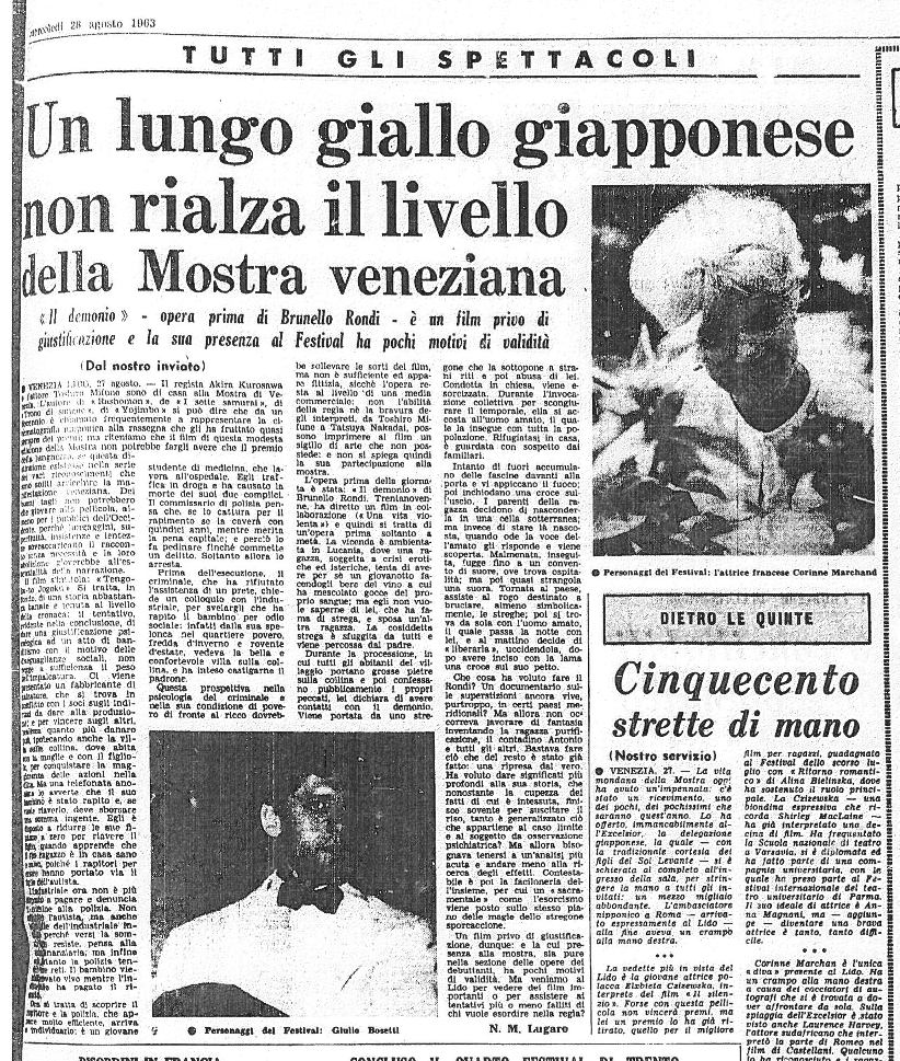 "Il demonio - opera prima di Brunello Rondi - è un film privo di giustificazione e la sua presenza al festival ha pochi motivi di validità"