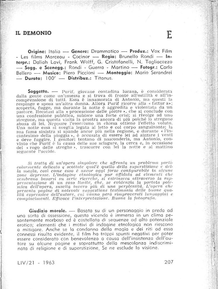 | Film (keywords PRIN 2012) | Il demonio (Brunello Rondi) |