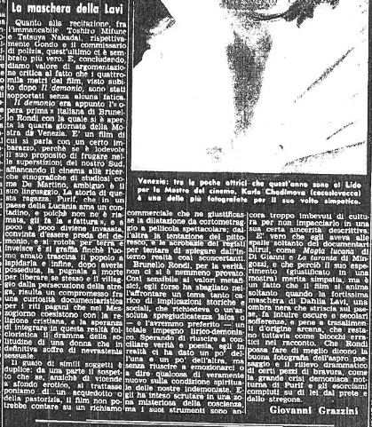 Film (keywords PRIN 2012) | Il demonio (Brunello Rondi) La taranta (Gianfranco Mingozzi) Magia lucana (Luigi Di Gianni) Tengoku to jigoku (Anatomia di un rapimento, Akira Kurosawa) |