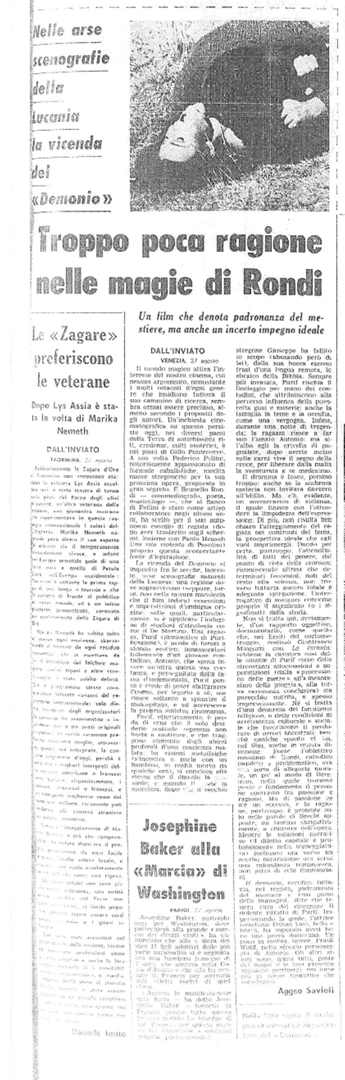 Film (keywords PRIN 2012) | Il demonio (Brunello Rondi) La taranta (Gianfranco Mingozzi) Una vita violenta (Paolo Heusch, Brunello Rondi) |