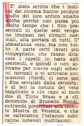 | Film (keywords PRIN 2012) | Chi lavora è perduto - In capo al mondo (Tinto Brass) Il demonio (Brunello Rondi) |