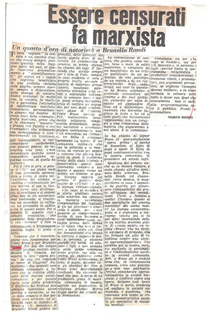 "Un quarto d'ora di notorietà a Brunello Rondi"