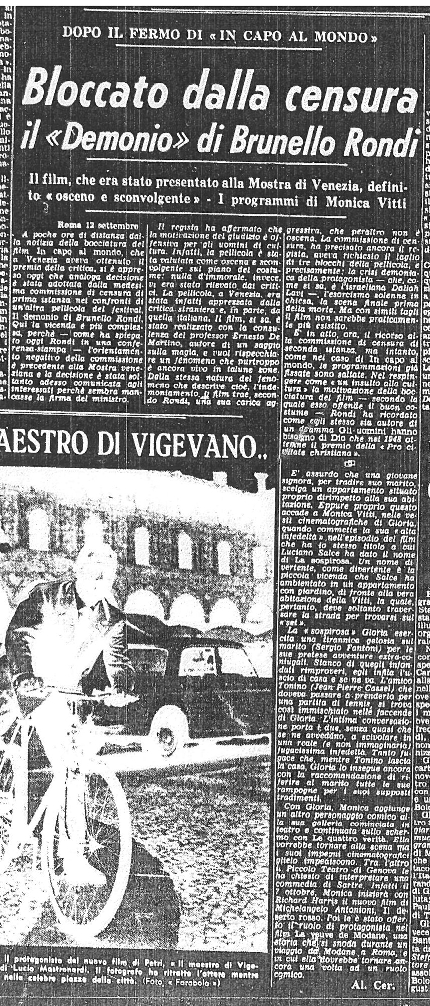"Bloccato dalla censura il demonio di Brunello Rondi"