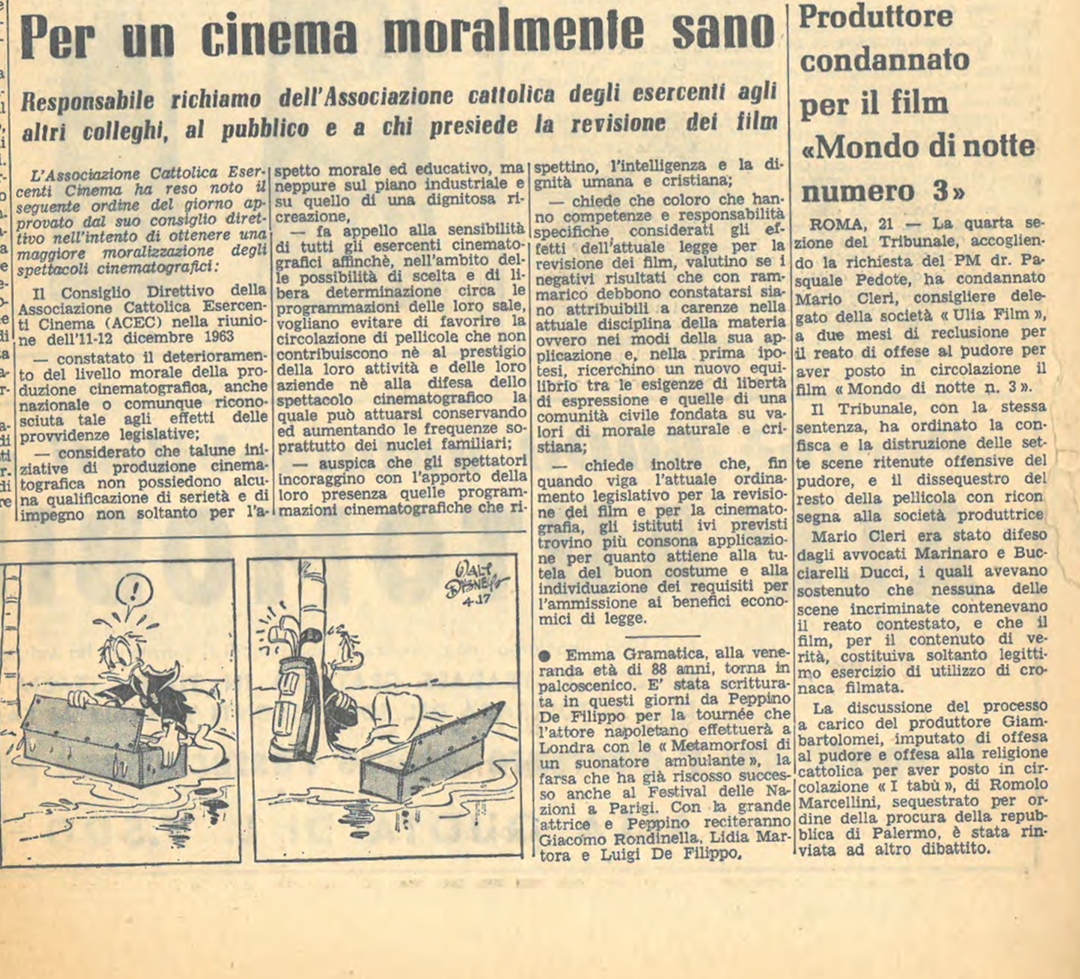"Responsabile richiamo dell'associazione cattolica degli esercenti agli altri colleghi, al pubblico e a chi presiede la revisione dei film"