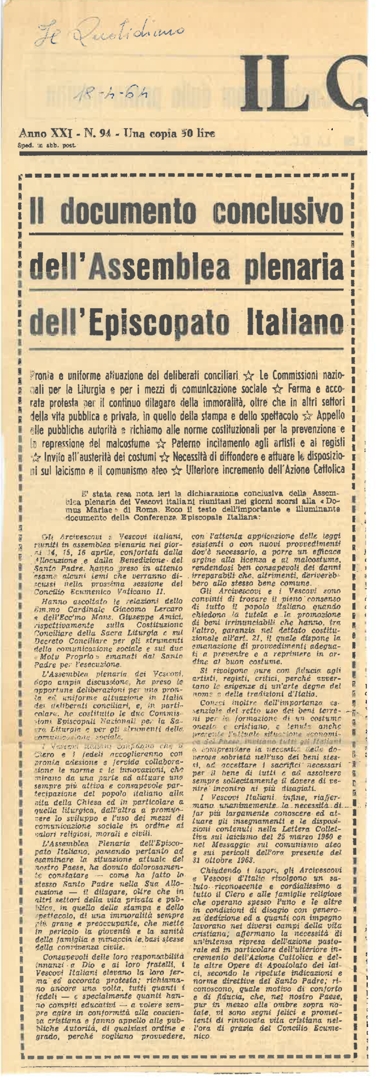 "Il documento conclusivo dell'Assemblea plenaria dell'Episcopato italiano"