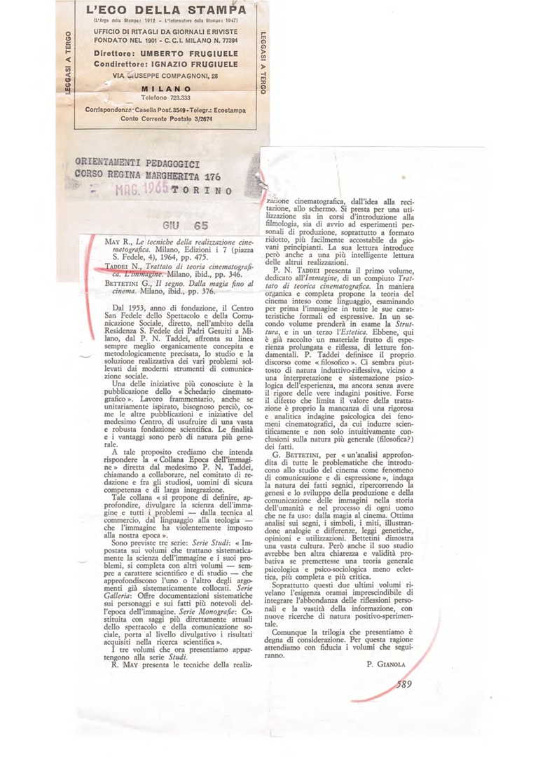 Articolo senza titolo tratto dal periodico Orientamenti pedagogici, maggio 1965