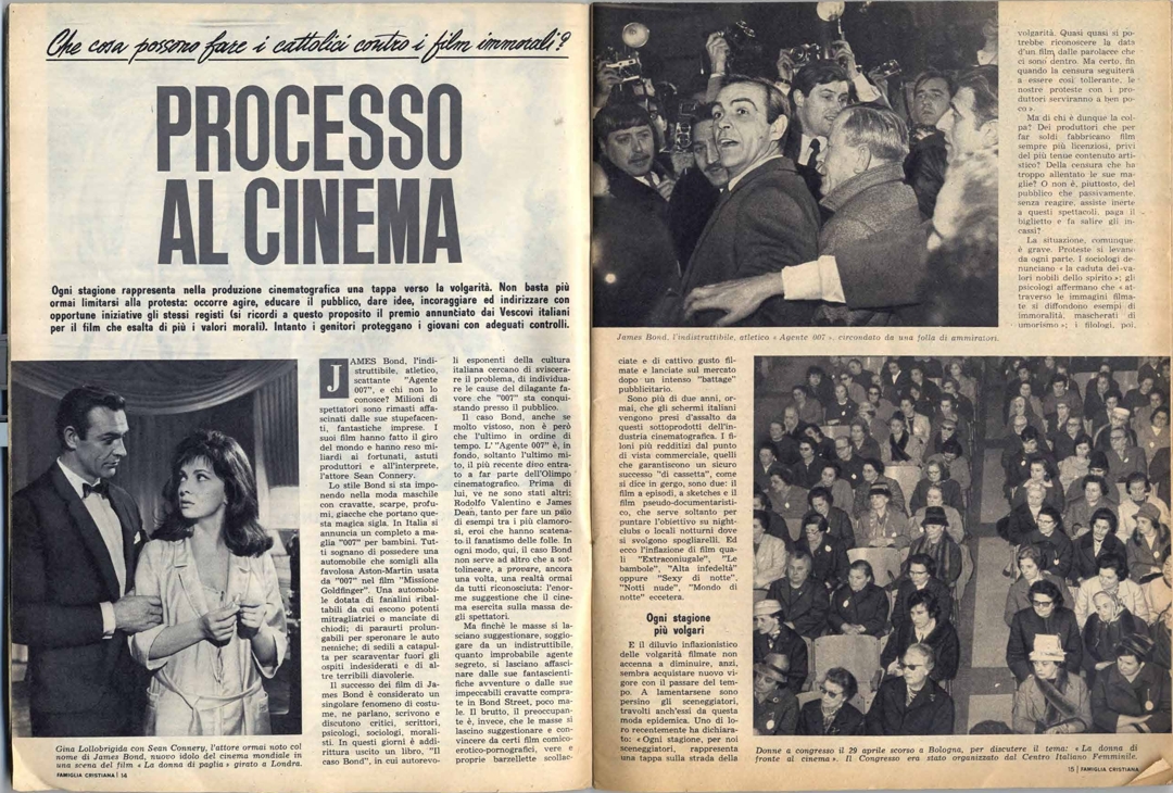| Film (keywords PRIN 2012) | Alta infedeltà (Franco Rossi, Elio Petri, Luciano Salce, Mario Monicelli) Extraconiugale (Massimo Franciosa, Mino Guerrini, Giuliano Montaldo) Goldfinger (Agente 007-Missione Goldfinger, Guy Hamilton) Le bambole (Dino Risi, Luigi Comencini, Franco Rossi, Mauro Bolognini) Mondo di notte (Luigi Vanzi) Mondo sexy di notte (Mino Loy) Notti nude (Ettore Fecchi) Woman of Straw (La donna di paglia, Basil Dearden) |