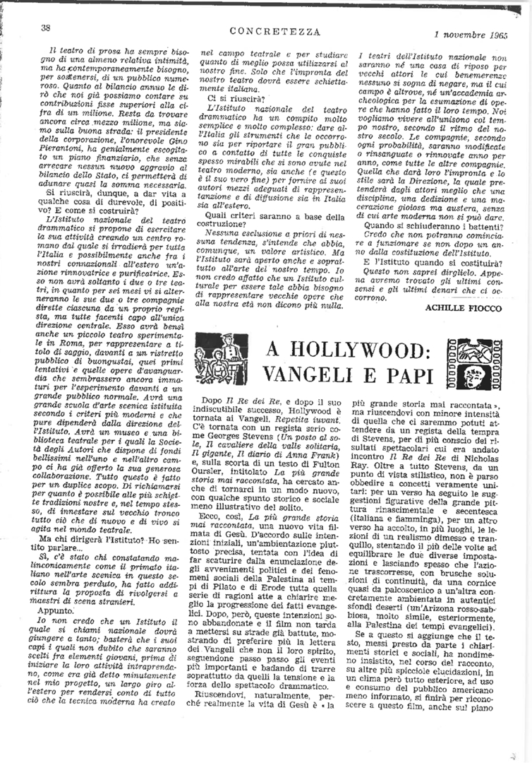 | Film (keywords PRIN 2012) | Il Vangelo secondo Matteo (Pier Paolo Pasolini) King of Kings (Il re dei re, Nicholas Ray) The Agony and the Ecstasy (Il tormento e l'estasi, Carol Reed) The Greatest Story Ever Told (La più grande storia mai raccontata, George Stevens) |