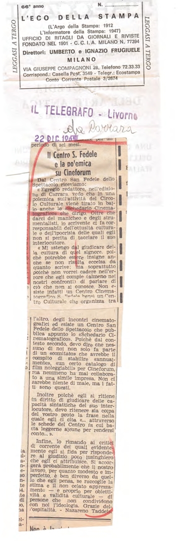 "Il centro S. Fedele e la polemica su cineforum"