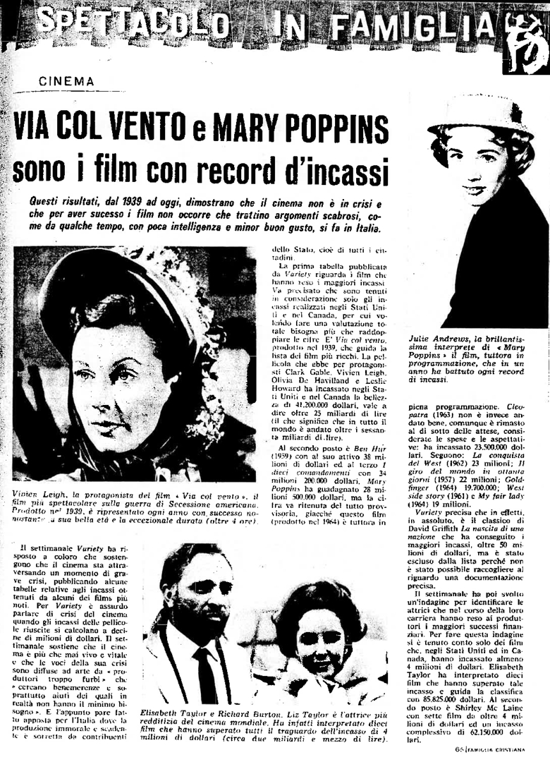 "Via col vento e Mary Poppins sono i film con record d'incassi"