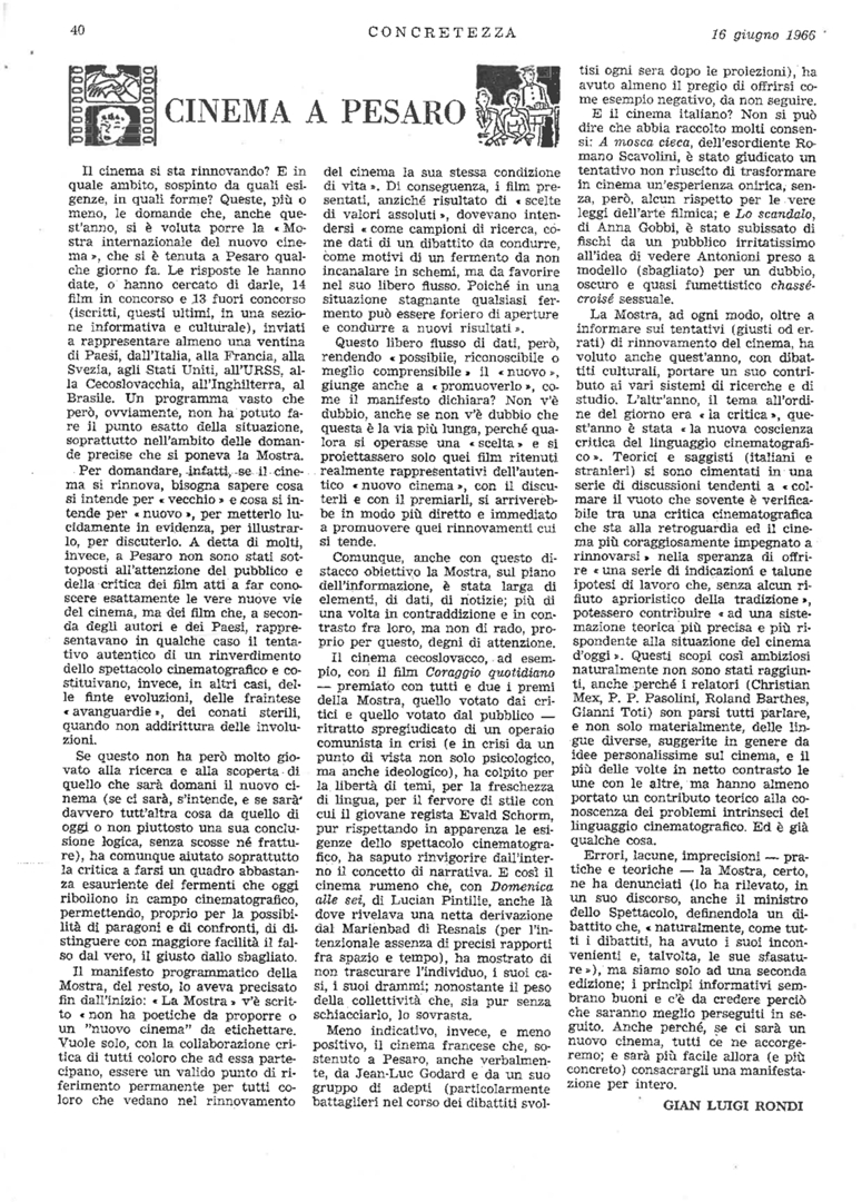 | Film (keywords PRIN 2012) | A mosca cieca (Romano Scavolini) Duminicǎ la ora ş ase (Domenica alle sei, Lucian Pintilie) Kazdy den odvahu (Il coraggio quotidiano, Evald Schorm) L'Année dernière à Marienbad (L'anno scorso a Marienbad, Alain Resnais) Lo scandalo (Anna Gobbi) |