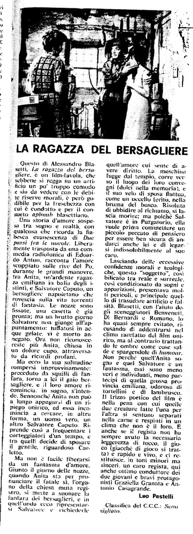 | Film (keywords PRIN 2012) | La ragazza del bersagliere (Alessandro Blasetti) Quattro passi tra le nuvole (Alessandro Blasetti) |